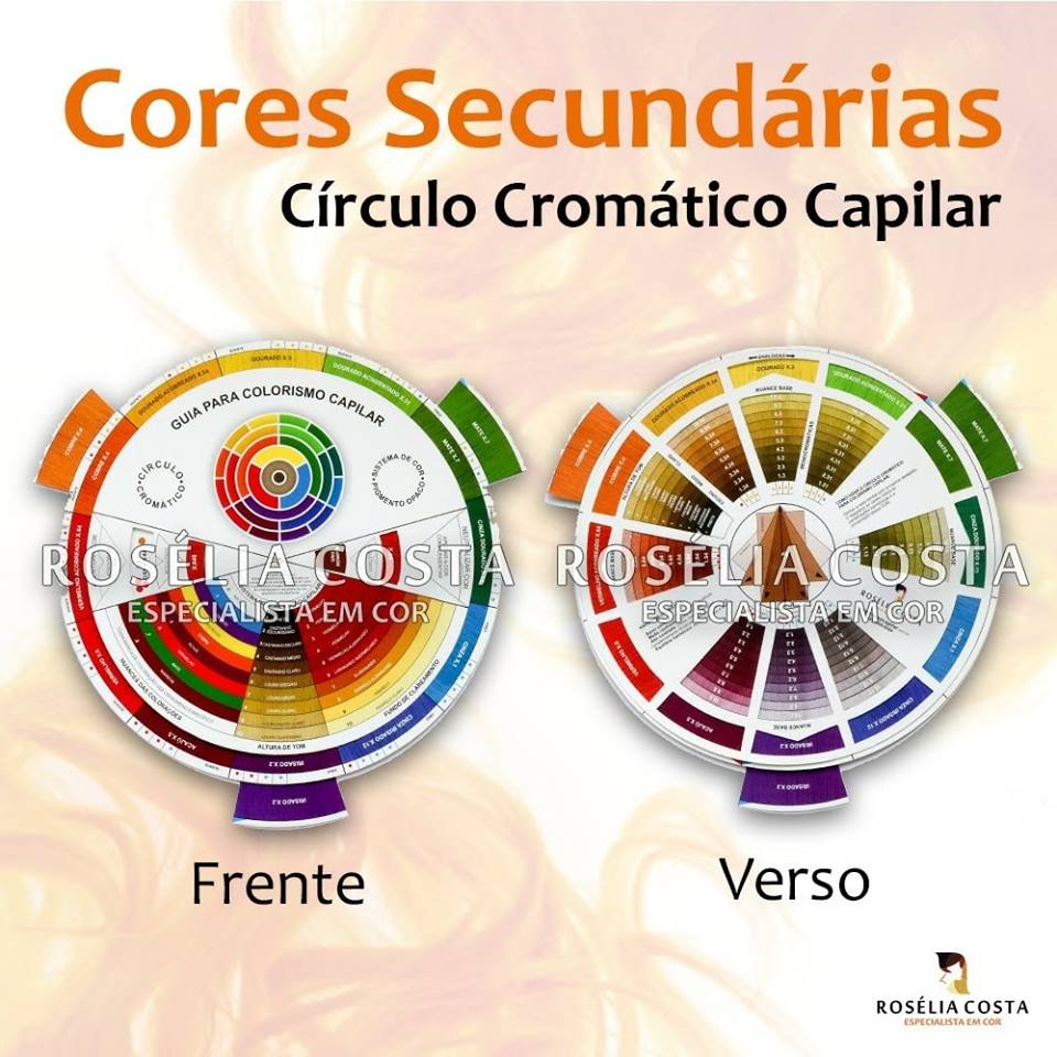 As cores secundárias comumente utilizadas pelos cabeleireiros, correspondentes ao sistema RYB, são cobre, mate e irisado.